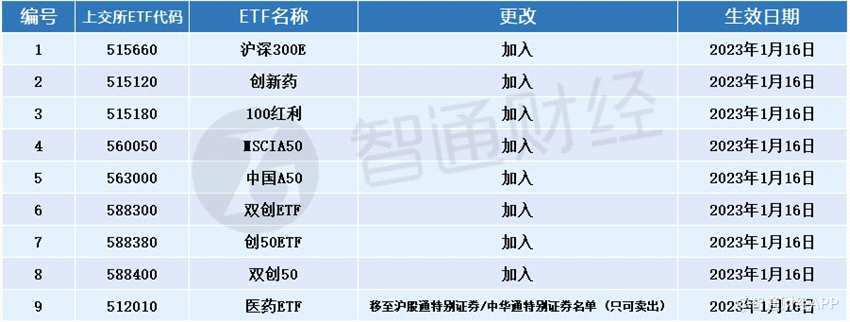 滬深股通名單最新調(diào)整:創(chuàng)新藥等15只ETF獲納入 2023年1月16日生效