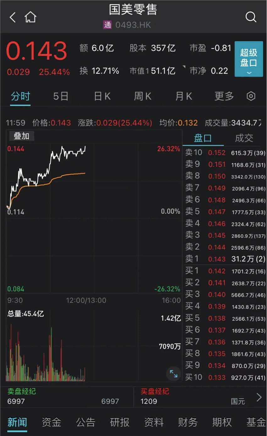 國美零售上漲25.44%。1月6日,國美零售公告稱,公司與控股股東黃光裕全資擁有的國美管理有限公司訂立貸款協(xié)議。國美管理同意向公司提供1.5億港元的貸款。
