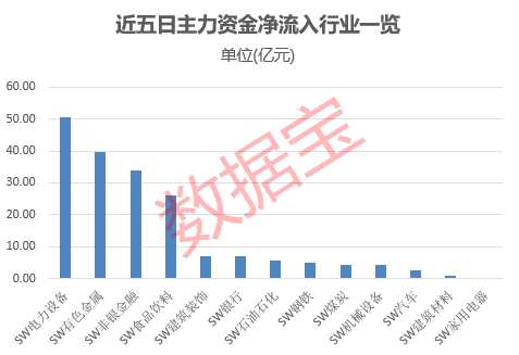 總體來看,有色金屬行業(yè)近期受資金青睞。截至目前,主力資金連續(xù)流入有色金屬三個交易日,近五日合計(jì)凈流入39.62億元。醫(yī)藥生物行業(yè)近兩個交易日遭主力資金連續(xù)凈流出,近五日凈流出金額達(dá)54.69億元。
