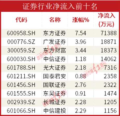 機(jī)構(gòu)資金大幅流入證券板塊,東方證券流入超過7億元