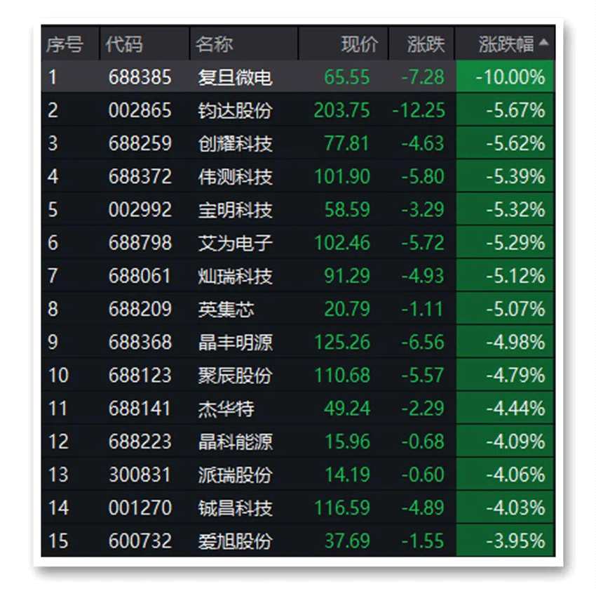除復(fù)旦微電之外,鈞達(dá)股份(002865)、偉測科技等多只半導(dǎo)體個(gè)股跌逾5%。