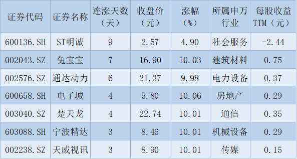 表:連續(xù)上漲3日且今日收盤漲停股一覽