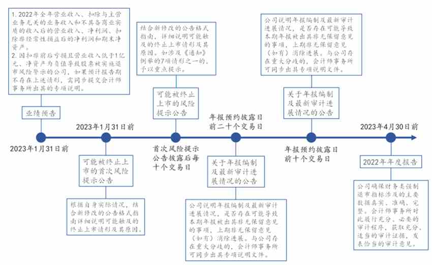 1.退市風(fēng)險(xiǎn)公司在首次風(fēng)險(xiǎn)提示公告披露(2023年1月31日前)后至年度報(bào)告披露前,應(yīng)當(dāng)每10個(gè)交易日披露1次風(fēng)險(xiǎn)提示公告。