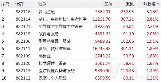 1月16日,A股放量拉升,行業(yè)板塊漲多跌少,其中,多元金融板塊漲幅達(dá)3.18%,位居首位;生物制藥、 半導(dǎo)體 、軟件與服務(wù)、耐用消費(fèi)品與服裝、食品飲料等板塊亦漲幅居前。