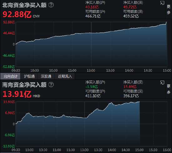 收評:北向資金凈買入92.88億元 滬股通凈買入43.16億元