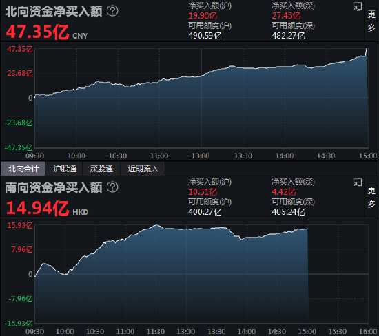 收評:北向資金凈買入47.35億元 滬股通凈買入19.9億元