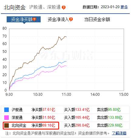 北上資金繼續(xù)掃貨,上午凈買入69億元。