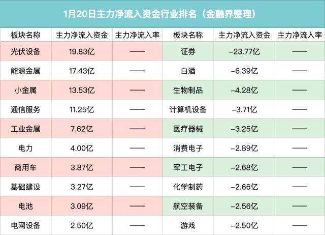 分板塊來(lái)看,主力買入居前的板塊有光伏設(shè)備、能源金屬、小金屬、通信服務(wù)等板塊,主力賣出最多的板塊是證券、其次是白酒、生物制品等板塊。
