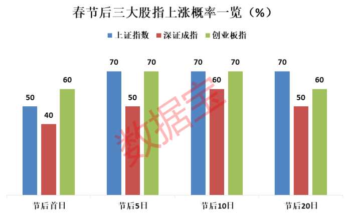綜合數(shù)據(jù)表明,近10年A股春節(jié)后出現(xiàn)上漲行情的概率很高。