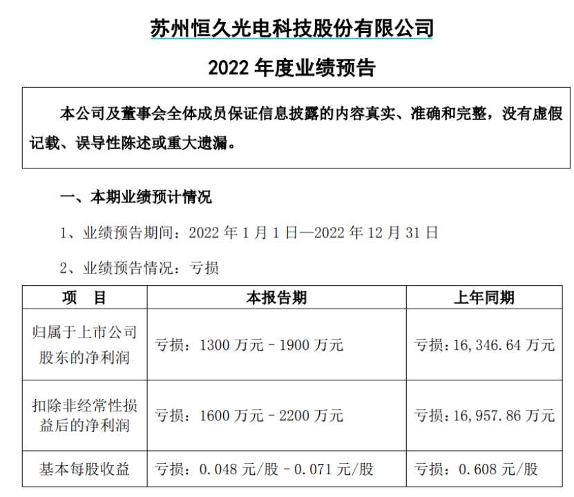 但從業(yè)績上看,恒久科技2022年度仍將呈現虧損局面。據恒久科技昨日披露2022年度業(yè)績報告顯示,預計全年凈利潤約為-1900.0萬元至-1300.0萬元。