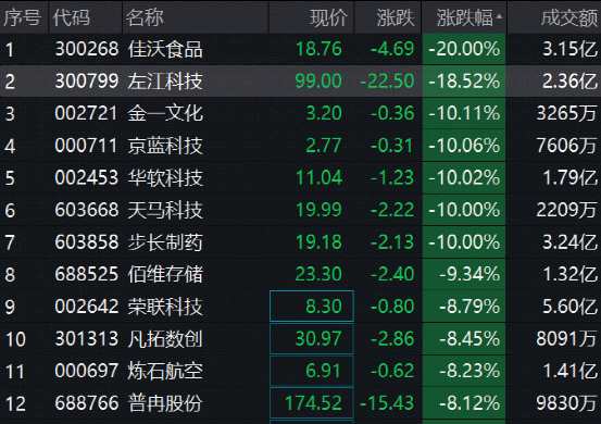 佳沃食品20CM跌停