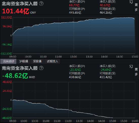 收評:北向資金凈買入101.44億元 滬股通凈買入60.77億元