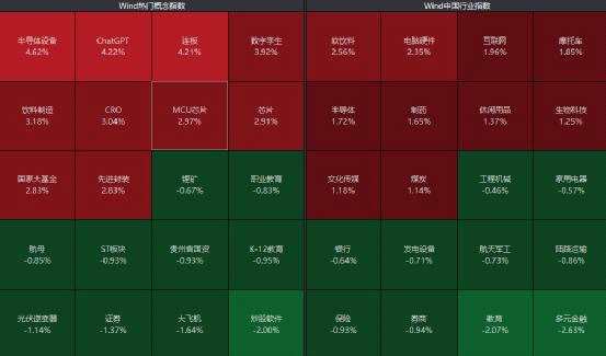 板塊方面,券商板塊高開(kāi)低走,而半導(dǎo)體、醫(yī)藥、白酒飲料等漲幅居前,ChatGPT概念股繼續(xù)活躍。