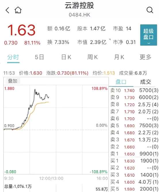 港股游戲股大漲 云游控股一度漲超108%