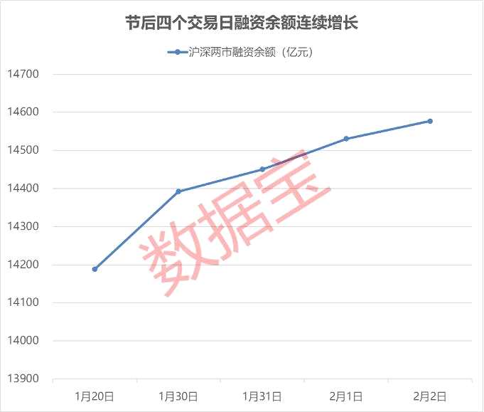 根據(jù)交易所披露的數(shù)據(jù),截至2月2日,滬深兩市融資余額達(dá)到1.46萬億元,為2023開年以來最高值;春節(jié)后四個(gè)交易日持續(xù)增長,本周合計(jì)凈買入金額達(dá)到389.25億元,為2021年2月以來最高單周融資凈買入金額,年內(nèi)凈買入金額由負(fù)轉(zhuǎn)正。