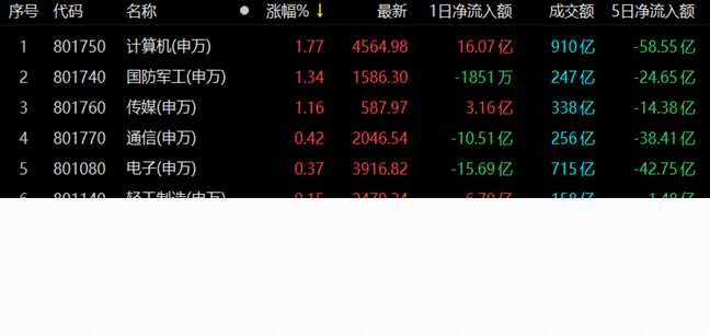 漲停股方面,今日有41只個股以漲停價報收,其中,有14只個股,股價已連續(xù)上漲超過6個交易日;跌停方面,有9只個股跌停價報收。從申萬一級行業(yè)看,計算機行業(yè)漲停股數(shù)量居首,為9只,傳媒緊隨其后,漲停股數(shù)為5只,輕工制造、機械設(shè)備和電子等行業(yè)漲停股數(shù)均為4只。