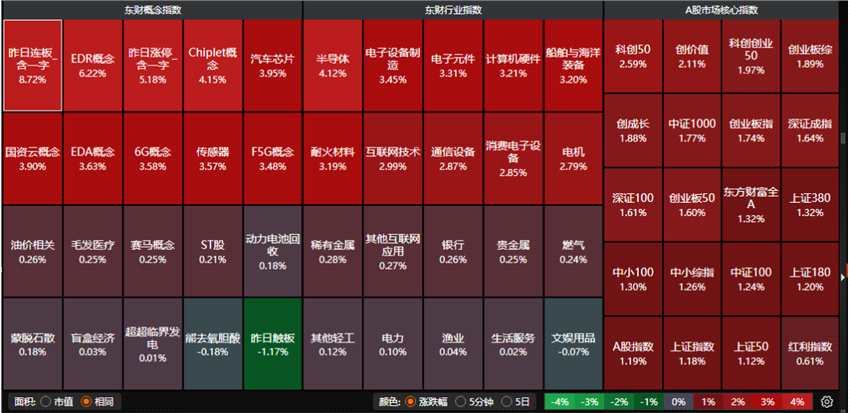 個(gè)股板塊呈現(xiàn)普漲態(tài)勢,滬深兩市共計(jì)4214只個(gè)股收漲,漲停股35只;718只個(gè)股收跌,跌停股9只。板塊而言,半導(dǎo)體、信創(chuàng)等科技方向,以及白酒等消費(fèi)領(lǐng)域,尤受資本青睞。