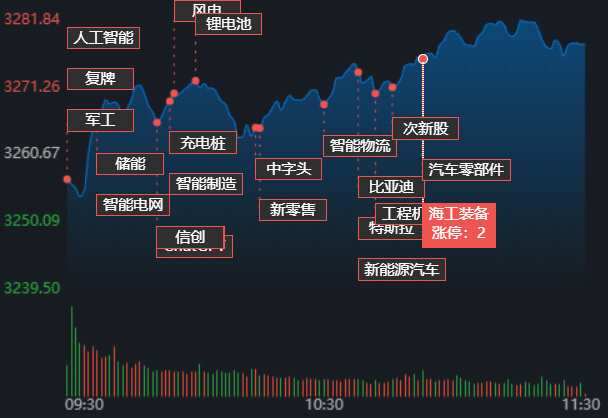 2月13日,A股早盤三大指數(shù)震蕩上揚(yáng),量能有所放大,深市略強(qiáng)。截至上午11:30,上證指數(shù)漲0.53%,報(bào)3278.07點(diǎn);深證成指和創(chuàng)業(yè)板指漲幅分別為0.70%和0.57%;滬深兩市成交額合計(jì)6061.2億元,較前一交易日同期增長4.25%??傮w來看,A股市場個(gè)股漲多跌少,漲跌停方面,有34只個(gè)股漲停,跌停股2只。
