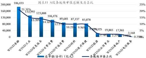 根據(jù)行業(yè)分類,截至2021年2月5日,A股市值排名前5名的行業(yè)分別為金融、工業(yè)、信息技術(shù)、日常消費(fèi)、可選消費(fèi),占A股總市值的比重分別為21.31%、15.20%、14.16%、12.17%、10.25%。目前金融和工業(yè)所占市值比重較大,而消費(fèi)、科技和醫(yī)藥占比相對(duì)較低,預(yù)計(jì)5年后科技和消費(fèi)類市值占比將由40%提升至60%。