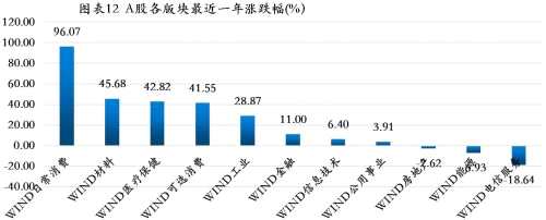 根據(jù)數(shù)據(jù),截至2021年2月5日,近一年來日常消費(fèi)板塊漲幅最高,達(dá)96.07%,遠(yuǎn)超其他板塊;材料、醫(yī)療保健和可選消費(fèi)漲幅均超過40%,而房地產(chǎn)、能源、電信板塊出現(xiàn)下跌。在市場(chǎng)資金端抱團(tuán)的背景下,預(yù)計(jì)未來消費(fèi)、醫(yī)藥和科技板塊將會(huì)進(jìn)一步走強(qiáng),而銀行、能源、地產(chǎn)等板塊有可能會(huì)繼續(xù)低迷,板塊分化加劇。