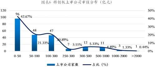 從全部4178家上市公司的市值來看,共有2157家上市公司市值位于0-50億之間,占比為51.63%,超過一半。如果將市值范圍擴(kuò)大到0-300億,共有3726家上市公司市值位于這個(gè)區(qū)間,占比89.18%,接近9成,市值大于3000億的上市公司僅有44家。從統(tǒng)計(jì)數(shù)據(jù)可見,無論是科創(chuàng)板、創(chuàng)業(yè)板還是主板(包括中小板)都是以小市值公司為主,且市值位于0-50億區(qū)間的上市公司均接近一半,而市值在300億以下的上市公司數(shù)量占比均在9成附近。