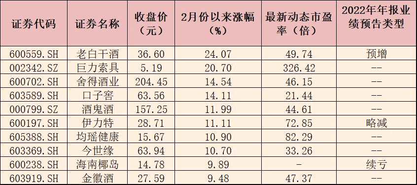 2月份以來白酒板塊漲超5% 機構(gòu)稱消費場景復(fù)蘇有望帶動板塊估值修復(fù)