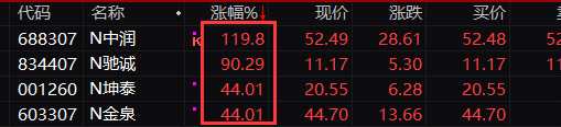 另外值得注意的是,新股行情也繼續(xù)保持熱度,今天有4只新股上市,上午悉數(shù)上漲。