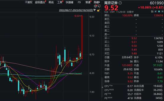 非銀金融板塊擺脫近期盤整,上午盤中漲勢(shì)明顯,券商股扛起上漲大旗,南京證券(601990)盤中觸及漲停,湘財(cái)股份(600095)、國盛金控(002670)等漲幅明顯。