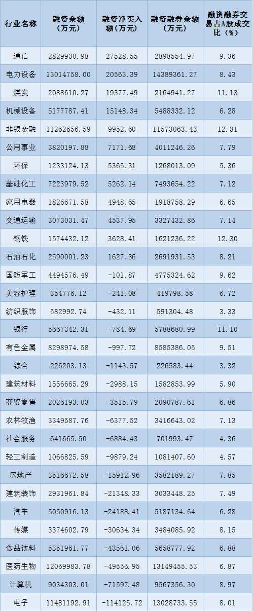 表:2月16日申萬(wàn)一級(jí)行業(yè)兩融交易情況: