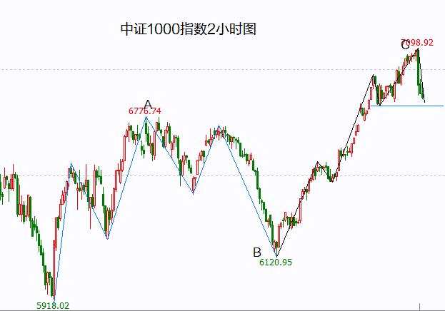 從中證1000指數(shù)來看,跌幅較少,還沒有跌破3日低點(diǎn)的支撐,頂部還沒有確立,后市觀察會(huì)否形成頭肩頂。創(chuàng)業(yè)板指是最弱的,周四就出現(xiàn)了破位,周五更是出現(xiàn)長(zhǎng)陰,很明顯C浪已經(jīng)啟動(dòng)了。