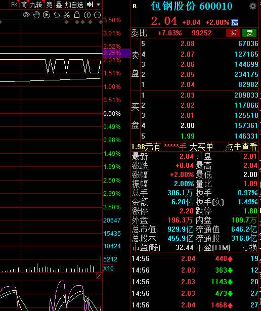 價(jià)格籠子也有例外,那就是低價(jià)股,低價(jià)股由于每一分股價(jià)變動(dòng)的漲跌幅都很大,在注冊(cè)制時(shí)對(duì)于這類股票有特別規(guī)定,即價(jià)格籠子執(zhí)行2%與0.1元范圍的孰高值。以包鋼股份(600010)為例,其買入基準(zhǔn)價(jià)為2.04元,但按照2%計(jì)算,就只能報(bào)2.0-2.08這一非常窄的范圍,此時(shí)就要選擇范圍更大的0.1元范圍,因此實(shí)行注冊(cè)制后,包鋼股份的正確報(bào)價(jià)范圍為1.94-2.14元(上下各0.1元)