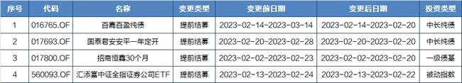 7.據(jù)統(tǒng)計,年內(nèi)共有40只基金宣布提前結(jié)束募集期,其中有2只為一天結(jié)束募集的“日光基”,有6只產(chǎn)品募集期在兩天以內(nèi)。多數(shù)基金稱,為充分保護基金份額持有人利益,保障基金平穩(wěn)運作,決定提前結(jié)束募集。站在當前時點,基于年初以來的市場表現(xiàn)以及基于對2023年行情可能的演繹方向判斷,多家公募基金認為,A股在短期震蕩整固后仍將走出階段上升行情,因而也繼續(xù)有針對性地看好未來權(quán)益類基金的發(fā)行態(tài)勢。另外,富達基金首只公募產(chǎn)品“富達傳承6個月持有期股票型證券投資基金”日前已經(jīng)正式獲批,不久將發(fā)行。(下表為本周提前結(jié)募的基金)