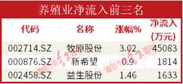 養(yǎng)殖業(yè)板塊中的牧原股份(002714)在完成首次回購的刺激下上漲3.02%,機構(gòu)資金入場吸籌,流入額4.51億元。板塊內(nèi)其他個股無表現(xiàn)。