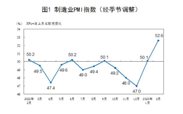 推手一:PMI數(shù)據(jù)遠(yuǎn)超市場預(yù)期。國家統(tǒng)計(jì)局3月1日公布數(shù)據(jù)顯示,2月,制造業(yè)采購經(jīng)理指數(shù)、非制造業(yè)商務(wù)活動指數(shù)和綜合PMI產(chǎn)出指數(shù)分別為52.6%、56.3%和56.4%,分別高于上月2.5、1.9和3.5個百分點(diǎn),三大指數(shù)均連續(xù)兩個月位于擴(kuò)張區(qū)間。