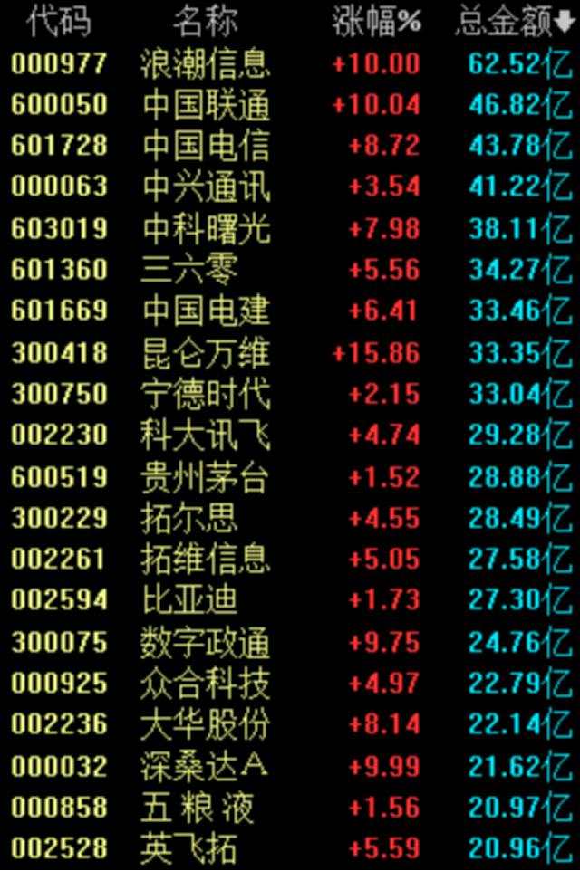 今天上午,中國聯(lián)通率先漲停,中國電信(601728)、中國移動(600941)分別上漲8.72%、5.52%。三大運(yùn)營商大漲,帶動數(shù)字經(jīng)濟(jì)主線全線走強(qiáng)。