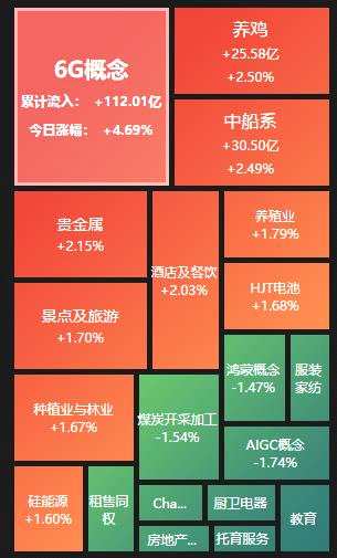 熱點方面,截至3月6日上午收盤,6G概念、養(yǎng)雞等行業(yè)漲幅居前。另外,教育、房地產(chǎn)服務等行業(yè)跌幅居前。