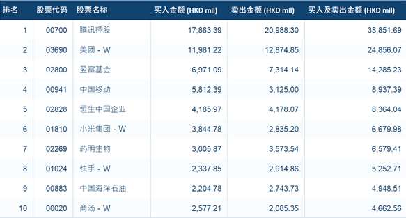 港股通(深)十大成交活躍股