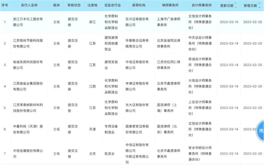 在全面實(shí)行股票發(fā)行注冊(cè)制制度規(guī)則發(fā)布實(shí)施不到一個(gè)月的時(shí)間里,滬深交易所主板審核中心已“開門迎新”。截至3月16日發(fā)稿,滬深交易所披露的IPO項(xiàng)目動(dòng)態(tài)顯示,全面注冊(cè)制下16家主板企業(yè)已提交注冊(cè)。