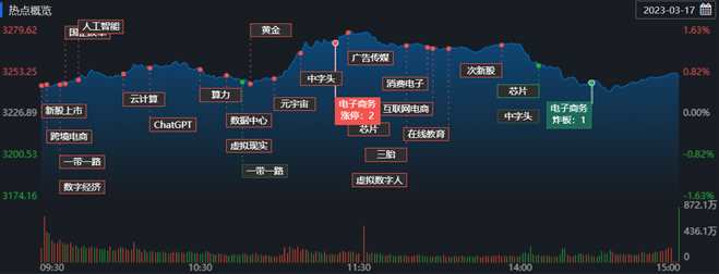 3月17日,滬深兩市三大指數震蕩分化,滬指日K線走出長上影的仙人指路形態(tài),深證成指則連續(xù)兩天收盤處于半年線之下。截至收盤,上證指數漲0.73%報3250.55點;深證成指漲0.36%報11278.05點,創(chuàng)業(yè)板指跌0.36%報2293.67點,A股合計成交額9734.32億元,較前一交易日增長15.14%,北向資金凈買入71.83億元,滬股通凈買入11.45億元,深股通凈買入60.37億元。總體上看,A股中漲多跌少,有3220只上漲,1696只下跌。