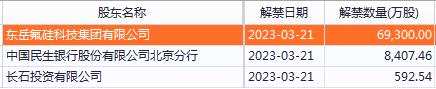 東岳硅材3月21日將解禁7.83億股,為首發(fā)原股東限售股份。解禁股東包括: