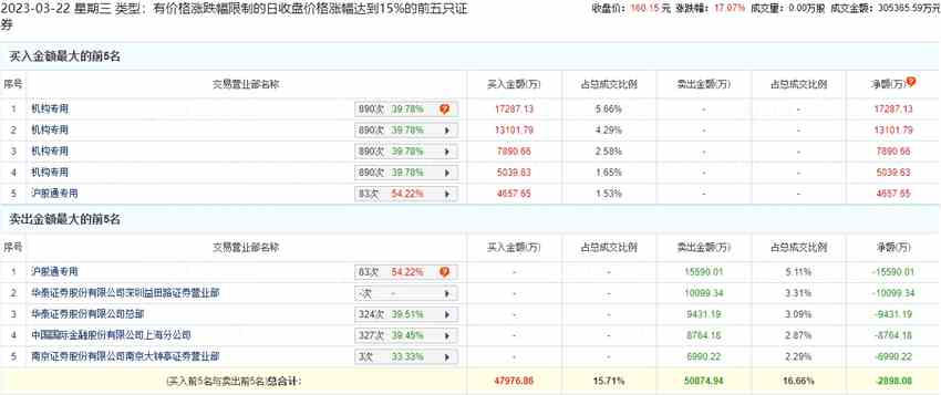 摘要: 北京3月22日訊寒武紀(jì)(688256.SH)截至今日收盤報160.15元,漲幅17.07%。龍虎榜數(shù)據(jù)顯示,買入寒武紀(jì)金額最大的前五名中,有4家機(jī)構(gòu)專用席位。經(jīng)統(tǒng)計,