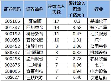 摘要: 數(shù)據(jù)寶統(tǒng)計(jì),截至3月22日收盤,滬深兩市共58只個股連續(xù)5日或5日以上主力資金凈流入。連續(xù)流入天數(shù)最多的是聚合順(605166),已連續(xù)17個交易日凈流入。連續(xù)凈流入天數(shù)較多的還有四川黃金(00133