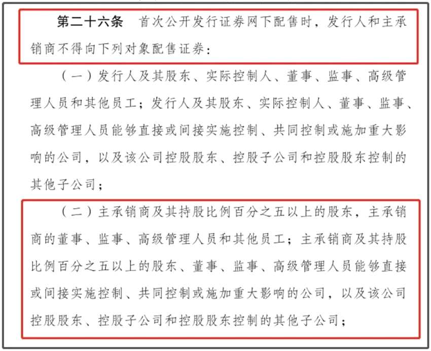 在科創(chuàng)板和創(chuàng)業(yè)板試點注冊制階段,就允許與承銷商等相關禁止配售對象存在關聯(lián)關系的管理人所管理的公募基金,參與首次公開發(fā)行證券網(wǎng)下配售。
