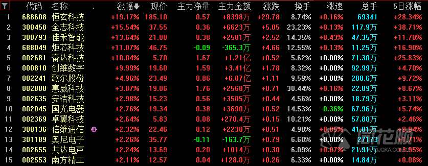 智能音箱概念連續(xù)多日大漲,今日收漲5.55%,恒玄科技、全志科技(300458)、佳禾智能(300793)等漲幅居前。