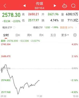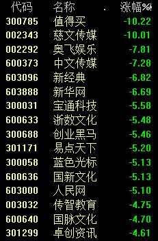 傳媒板塊中,值得買(300785)跌超10%,奧飛娛樂(002292)、中文傳媒(600373)盤中跌停。