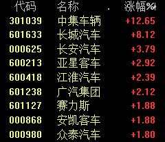 汽車整車板塊上午漲幅顯著,中集車輛(301039)上漲12.65%,長城汽車(601633)漲超8%。