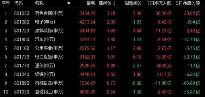 滬指收盤創(chuàng)年內(nèi)新高!有色金屬周漲幅逾5%