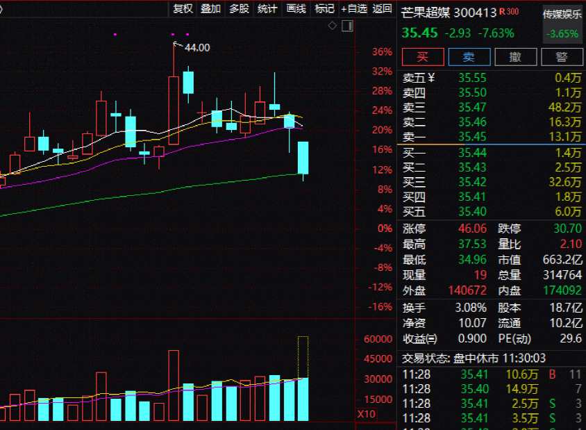 700億芒果超媒股價(jià)大跌