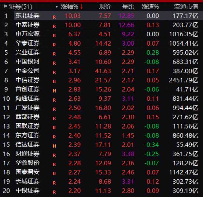 東北證券帶動(dòng)整個(gè)券商板塊活躍,中泰證券也漲停,申萬宏源、華泰證券、興業(yè)證券等紛紛大漲。