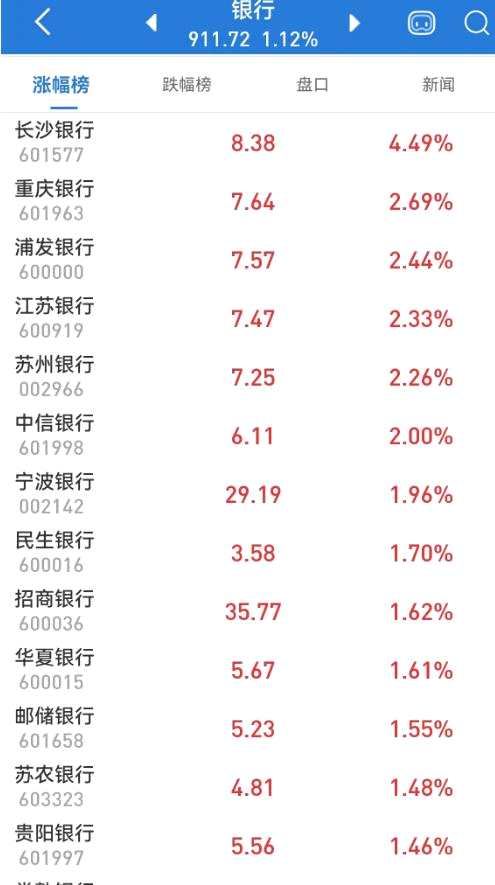 AH銀行股早間聯(lián)袂走強,A股銀行板塊指數(shù)開盤后快速拉升,一度漲近2%,創(chuàng)1年來新高。長沙銀行(601577)盤中放量大漲近5%,創(chuàng)1年半來新高(復(fù)權(quán),下同);中國銀行、農(nóng)業(yè)銀行雙雙創(chuàng)5年多來新高,工商銀行、交通銀行等亦紛紛創(chuàng)出多年來新高。